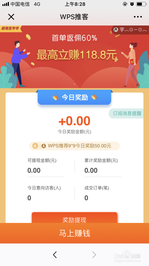 进入 WPS推客 的页面后,点击 我要赚钱 。