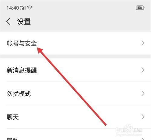 在[设置]页面找到 [帐号与平安]选项,直接点入