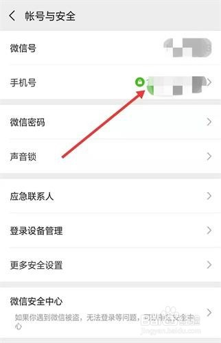 在[帐号与平安]页面中可以看到[手机号]选项,直接点入