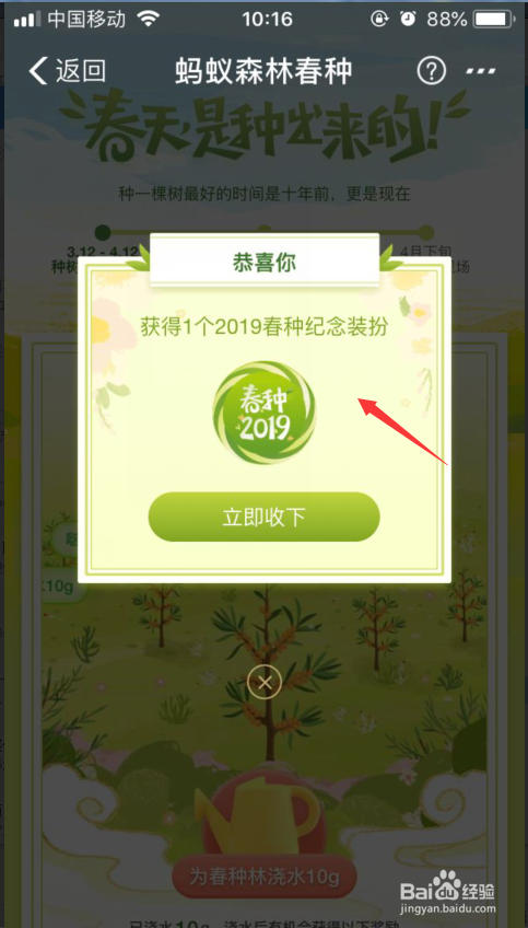然后我们就可以看到为春种林浇水的按钮了,我们点击它,如图所示;