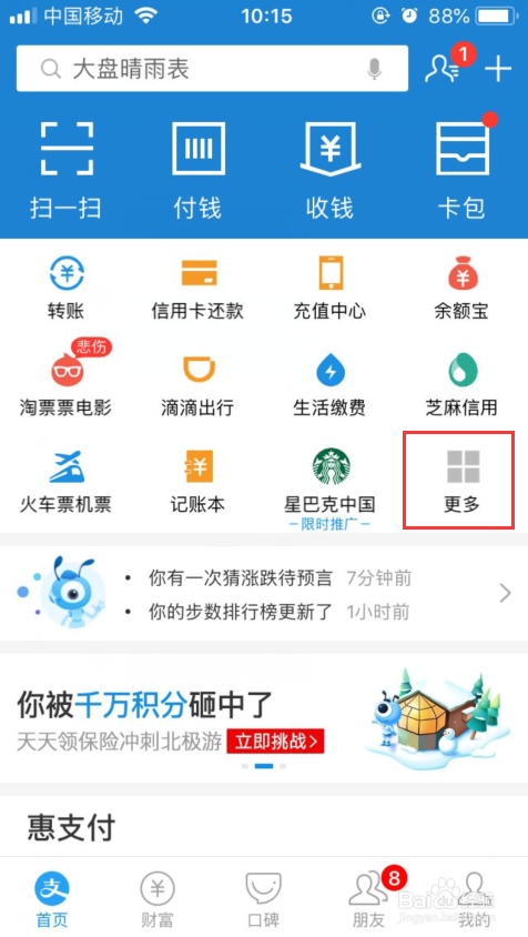 接着我们点击支付宝首页图示的更多选项,如图所示;
