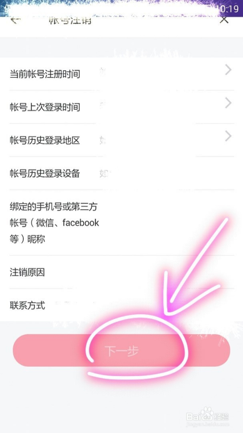 最后在呈现的页面中按照提醒填完响应信息后点击下一步即可进行账号刊出。