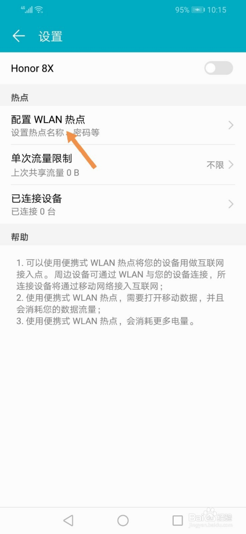 点击便携式WLAN热点后,点击设置装备摆设WLAN热点。