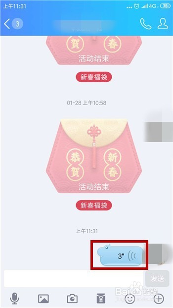 打开QQ老友聊天界面,长按住想要保藏的语音文件。