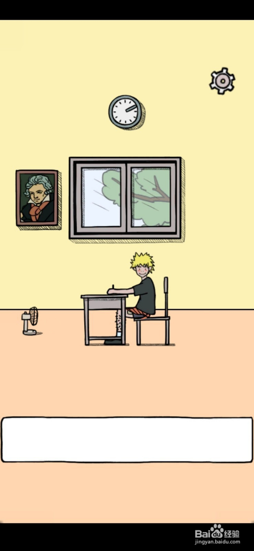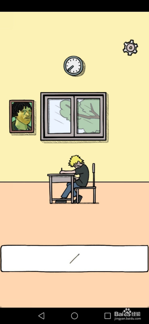第5关先点击地上的拖把,接着将拖把放在墙上的画上,然后在黄头发男孩看手机时对他利用木棍就过关了。