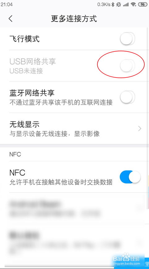手机毗连WiFi,点击更多毗连设置,把USB共享收集打开。