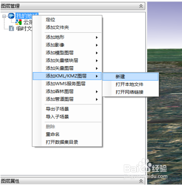 选中我的地球 右键添加 kml 图层->新建或打开当地文件,如下图所示: