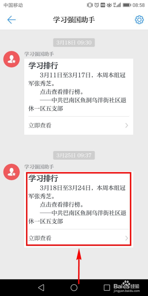 若是你的账号已经实名制认证,而且已经插手到了地点的党支部。那么就可以在动静页面中找到并点击【进修排名】的动静。
