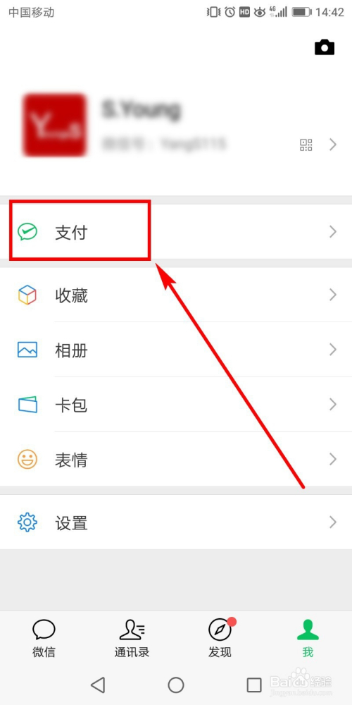 进入我的页面后,在页面图示位置的列表中点击【支付】按钮。