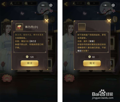 在商城可以用采办体力丹,可以增添体力,体力是游戏必用道具,还有在道具中可以采办道具如坊间书本可以提高聪明