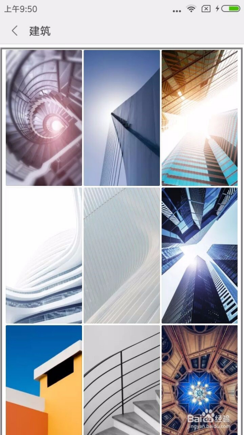 打开壁纸的界面中会有各类各样的壁纸图片的类型,你可以在这界面中选择喜好的壁纸气概类型,而在这选择“建筑气概”的类型。