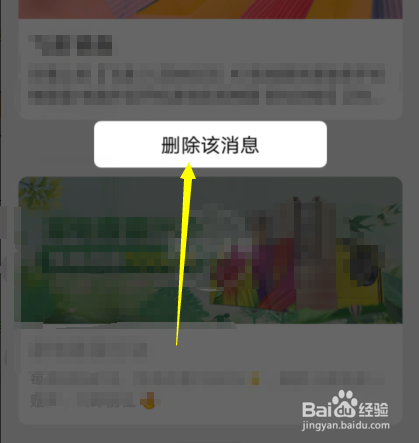 长按该告白动静内容,弹出删除该动静菜单后,点击即可删除该条动静。