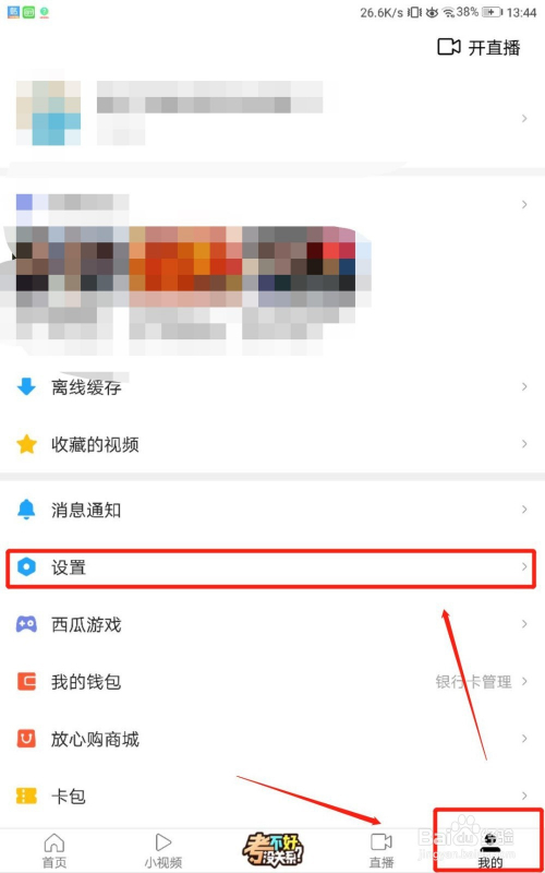 第二步,我们打开西瓜视频应用之后,点击底部的“我的”菜单,然后点击“设置”,如图所示。