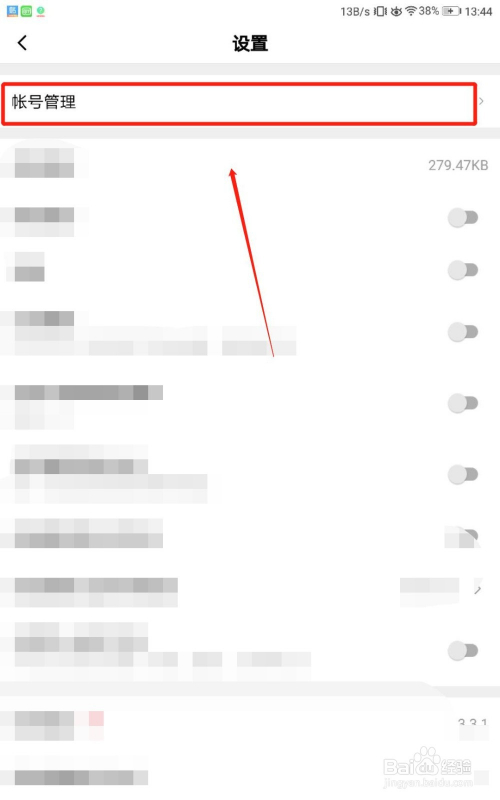 第三步,进入设置页面之后,我们点击账号办理,如图所示。