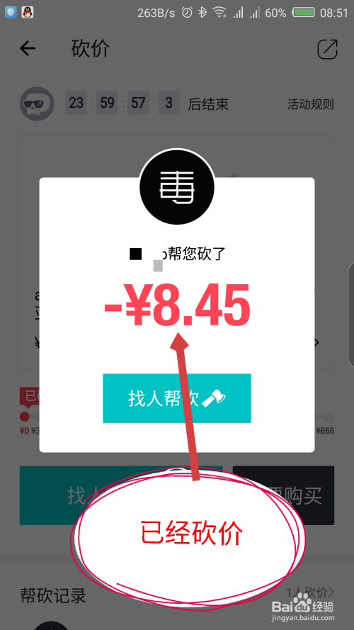 会弹出一个窗口,上面提醒你已经砍价的几多钱。如图所示