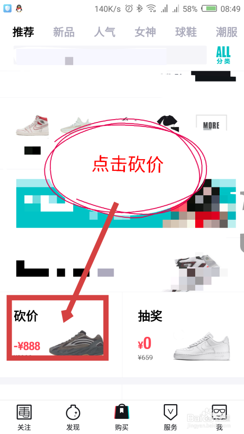 在采办本家儿界面中,滑动屏幕,能看到左下角有个砍价卡片,点击砍价。如图所示