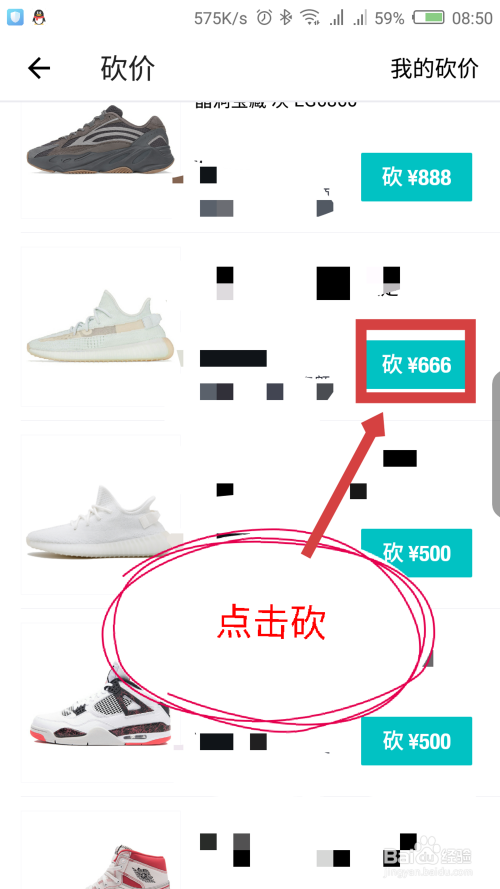 会打开砍价界面,上面的都可以砍价,点击商品后面的砍字。如图所示