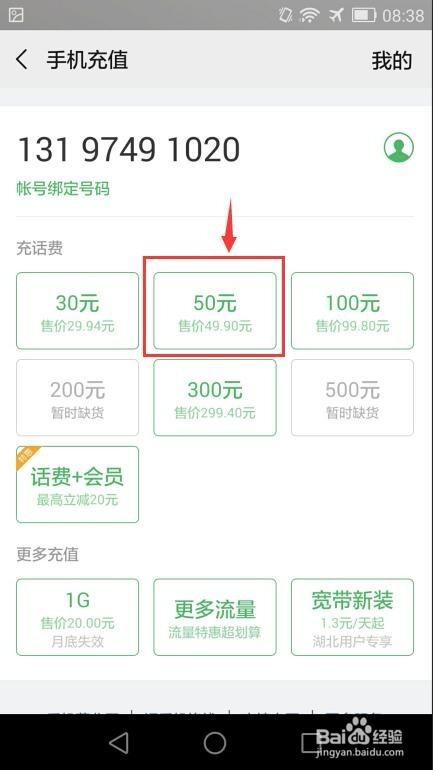 按照需要选择充值金额;