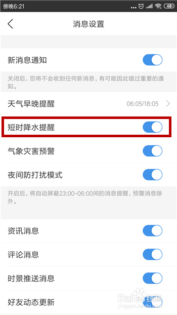 或者我们可以选择性的封闭一些提醒通知,好比说封闭降水提醒等。