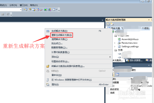 在解决方案上点击鼠标右键,选择从头生当作解决方案,期待编译完当作。