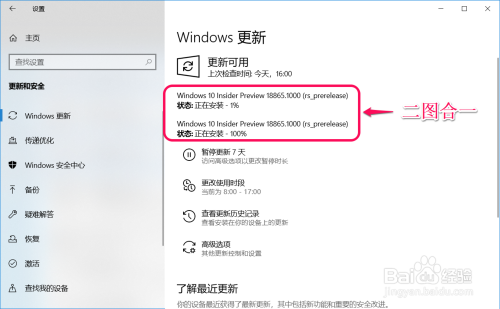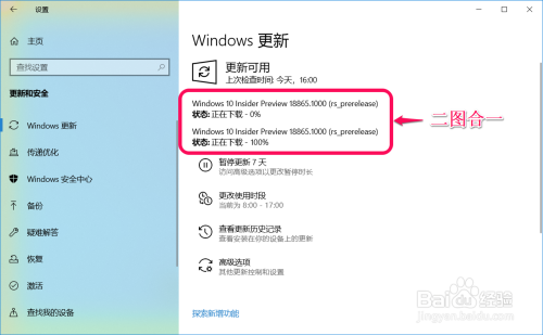 下面介绍Windows 10从18362版进级到18865跳跃预览版系统过程。