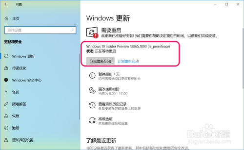 Windows 10-18362版进级到18865跳跃预览版系统教程
