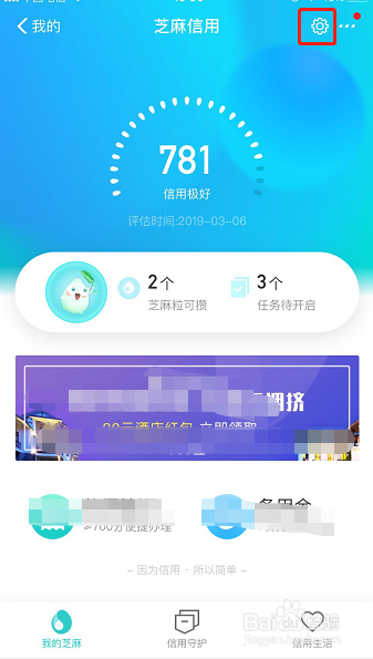 若是有伴侣感觉本身的芝麻信用分数不敷高,想要晋升信用分该怎么做呢。可以经由过程完美身份信息来晋升,点击页面右上角齿轮样式的图标,如图所示!