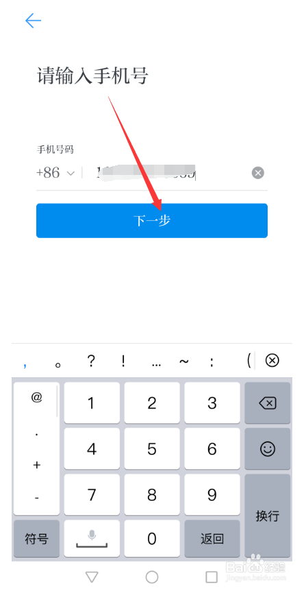 然后在输入手机号码界面里直接输入学习强国绑定的手机号码,然后点击下一步,如下图所示。