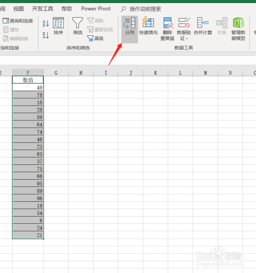 首先选中我们需要更改格局的数字,选择 数据 标签,中的 排列。