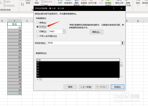 在如图所示这步调中,我们选择“文本”格局,因为这样输出的格局就是文本格局的数字了。