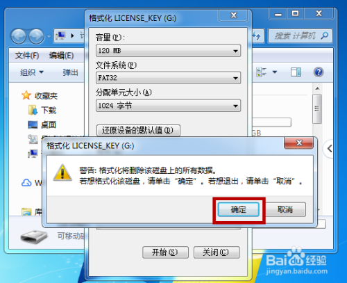 然后会扣问我们格局化后将会断根所稀有据,点击【确定】,格局化后看可否打开。