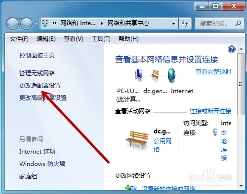 在收集和共享中间里点击左侧的【更改适配器设置】。