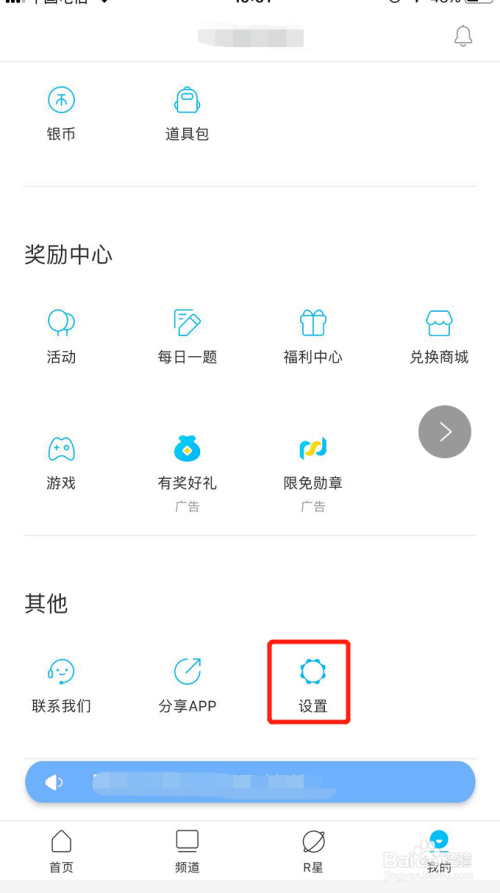 进入我的本家儿页后,在页面后半部门其他大类下找到齿轮模样的【设置】图标,如图所示,点击此图标进入设置本家儿页!