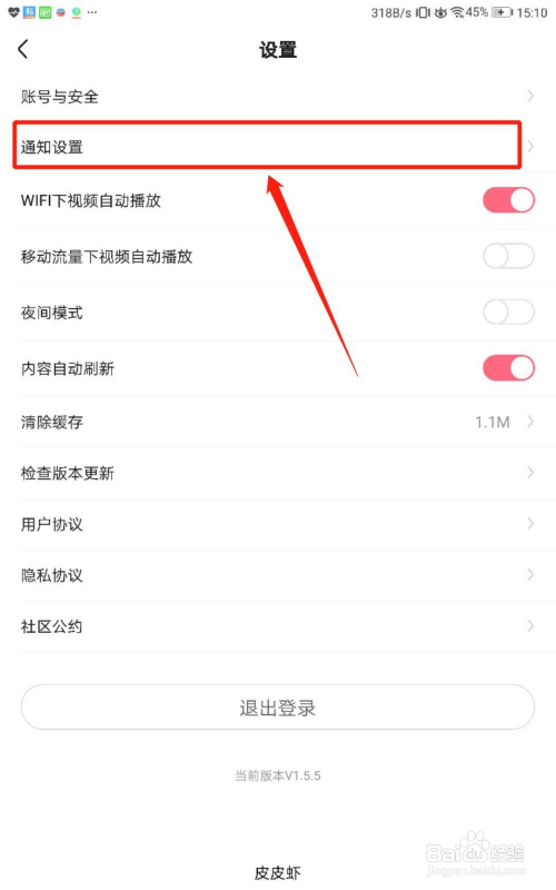 第四步,点击设置后,在设置页面找到通知设置,如图所示。