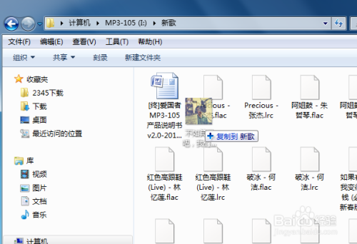 将电脑中的音乐拖入到mp3磁盘中,也可以快速将音乐传入到mp3内。