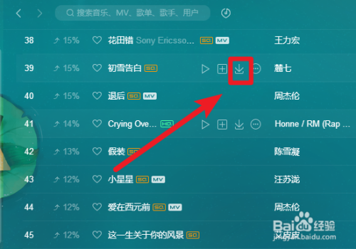 确定后,在QQ音乐中,选择需要下载的歌曲,点击下载的图标,即可将音乐下载到mp3中。