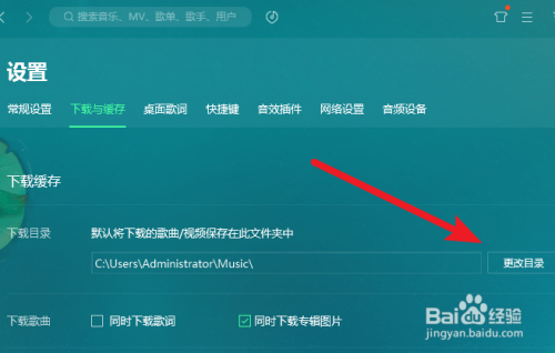 在QQ音乐设置内,我们点击下载与缓存的选项,然后点击更改目次。