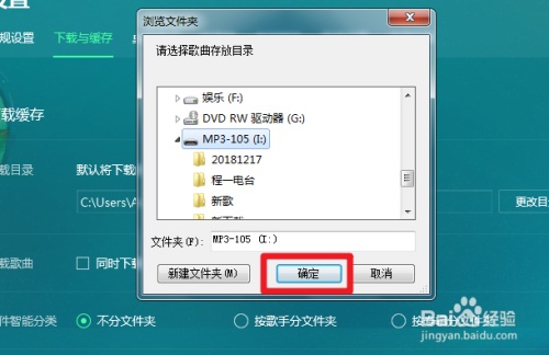点击后,我们将下载目次选择为本身mp3的磁盘,然后确定。