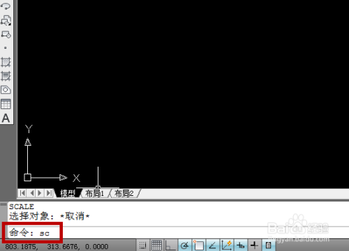 缩放比例因子我们可以利用快捷号令,在左下角的号令里输入sc即可。