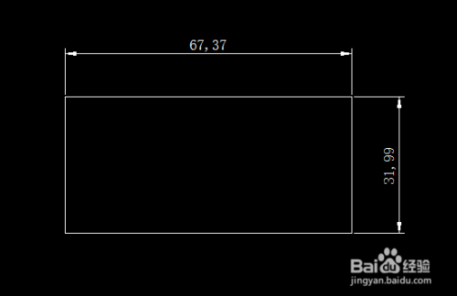 具体的我们来绘图申明,这里我随便画了一个长方形,颠末标注的尺寸可看到是67.37X31.99。