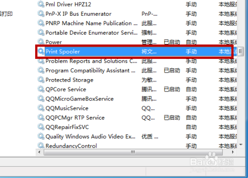 在办事中找到【Print Spooler】,双击这个打印机办事功能。