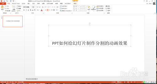 首先打开PPT,今天标的目的大师介绍的是PPT建造设置幻灯片之间切换过程的朋分动画结果,如下图所示。