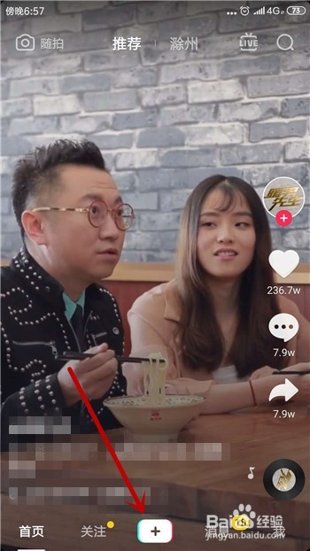 在抖音里点击下方的【+】按钮筹办拍摄步惊云发色视频。