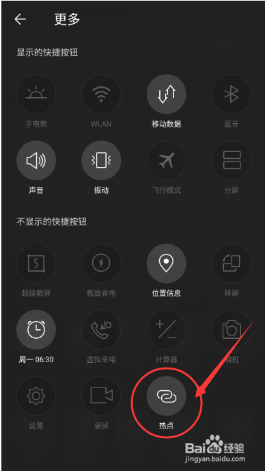 下滑封闭快捷设置,再从顶手下滑,可以看到热点已打开;