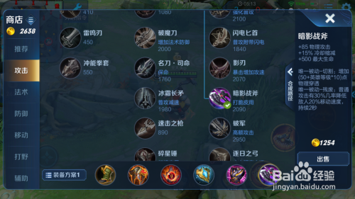 之后可以选择选择爆烈之甲。继续弥补本身的输出了,受到危险还可以增添本身的移速等。最后一件装备可以选择暗影战斧,可以对对方脆皮英雄造当作威胁了。