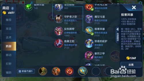 之后就选择极北风暴,增添本身的物防,增添本身20%的CD,还有对敌方英雄的减速,很是适合用来开团了。