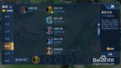 出门装选择鞋子,铭文的移速是只有4%的,但我们有生命值答复,在前期是可以很好的抗压的。然后进级为影忍之足。本家儿要原因就是技术的霸体了。
