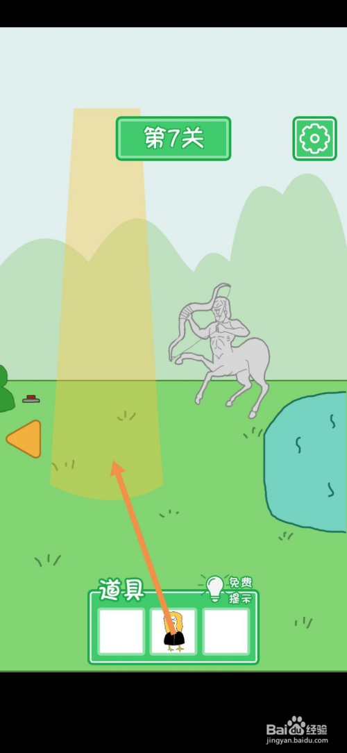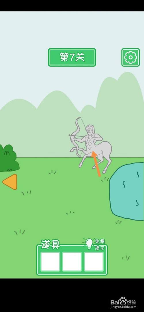 第7关先点击标的目的右箭头到右边去。在右边,点击石像屁股上的箭,接着将箭拖动到石像身上,然后点击石像。