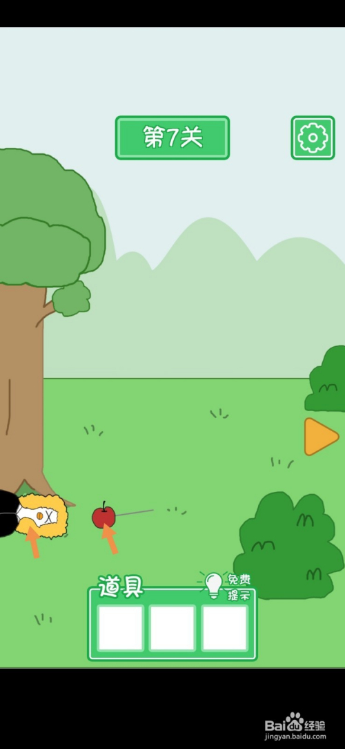 箭射出去后,点击标的目的左箭头到左边去。在左边,点击躺在草地上的鸭子和苹果,接着点击标的目的右箭头到右边去。