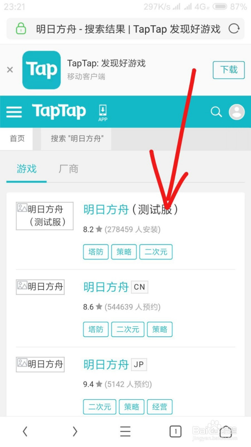 然后我们点击taptap搜刮明日方舟。
